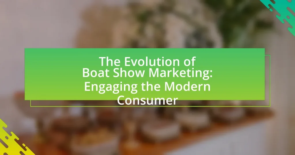 The evolution of boat show marketing has transitioned from traditional in-person exhibitions to a more integrated approach that includes digital platforms and experiential marketing. Initially, boat shows primarily relied on physical displays and face-to-face interactions to attract potential buyers, showcasing a limited range of products in specific locations. Over time, advancements in technology and changes in consumer behavior prompted marketers to adopt online strategies, such as virtual boat shows and social media campaigns, allowing for broader reach and engagement. For instance, the introduction of live streaming and interactive online experiences during boat shows has enabled brands to connect with audiences who cannot attend in person, reflecting a shift towards a more consumer-centric approach. This evolution is supported by data indicating that 70% of consumers prefer to research products online before making a purchase, highlighting the importance of digital presence in modern marketing strategies.